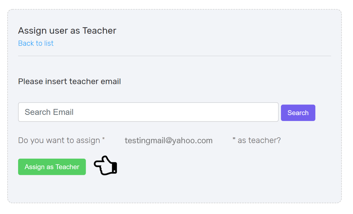 Enter existing email . Admin can add multiple email on the input for example "test@yahoo.com,test@gmail.com"